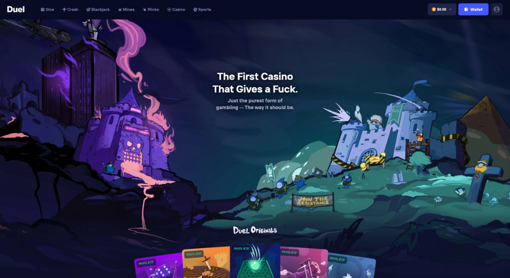 Duel.com is one of the latest crypto casinos launched in 2025, but certanly unique. Made by the famous gambling profile Monarch, the casino is focused on transparency and fairness with the player in mind. In this short review we will go over the different games, bonuses and what makes Duel.com Unique.